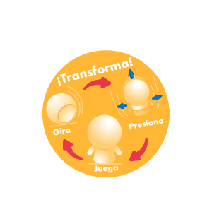 Gira, presiona y juega. Promueve coordinación dinámica y habilidades motoras.